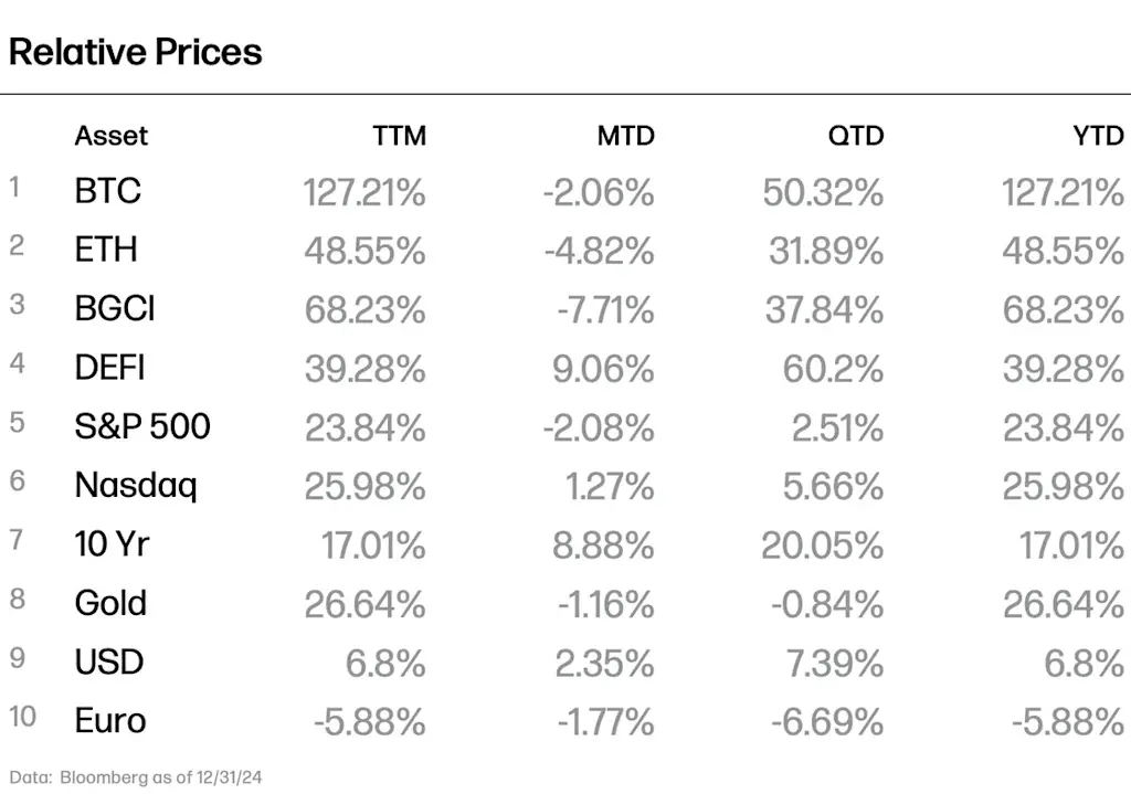 The crypto market benefited from the tailwinds of the presidential election. On December 4th, Paul Atkins, former SEC commissioner and a proponent of a progressive approach to regulation, was named as the nominee to be the new SEC chair by President-elect Trump. Atkins’ nomination, along with other pro-crypto news from Trump’s transition team, contributed to BTC breaking the $100,000 barrier on the same day, a major milestone in Bitcoin’s history. Additionally, other news suggesting that pro-crypto policies would take hold in the next administration gained momentum, such as new House Financial Services Chairman French Hill signaling his plans to prioritize passage of stablecoin and crypto market structure bills, further underscored anticipation of a more favorable regulatory landscape for digital assets in 2025.