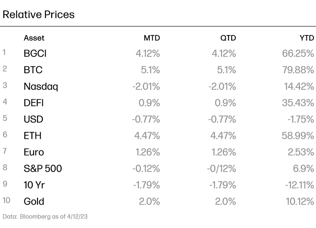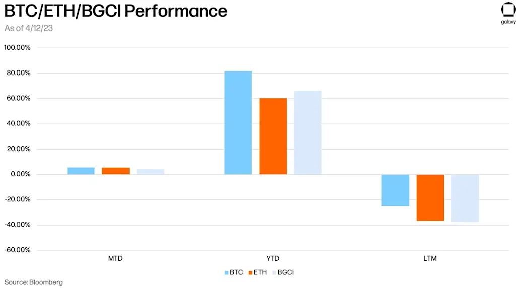 Crypto markets experienced a bounce-back performance in March after February’s skid as bitcoin (“BTC”) outperformed finishing up 23% on the month. Major themes impacting both traditional and crypto markets stemmed from the banking crisis led by closures of Silvergate Bank, Silicon Valley Bank and Signature Bank. Concerns over banking viability continue and depositors are fleeing en masse to larger systematically important banks, money market funds with higher yields, and non-sovereign reserve assets, such as gold and bitcoin.