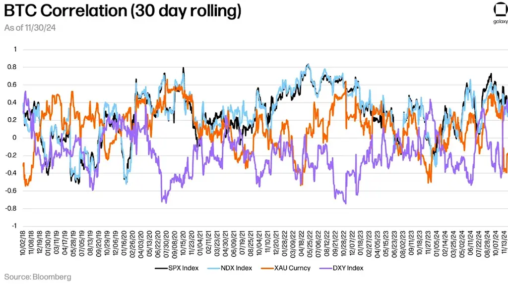 Broadly speaking, November was an extremely bullish month for Bitcoin and digital assets, with 2024 marking the 4th best November for BTC in its 15-year history. Also, December has historically been positive, with 8 of the past 14 Decembers posting positive gains. Heading into 2025, the market is anticipating more clarity on Trump administration plans for digital assets, news of additional corporate or nation-state adoption, and evidence of a stabilizing macro picture as market catalysts.