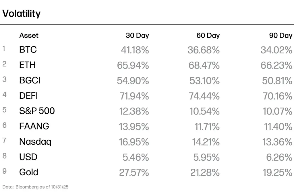 As October closed, markets were recalibrating to a world of more selective liquidity and less certain policy support. The weakness extended into early November, with BTC dipping below $100,000 for the first time since June. As Galaxy’s Head of Firmwide Research, Alex Thorn, observed in a client note, “heavy whale distribution, rotation into competing narratives like AI, gold, and stablecoins, and weak performance from BTC treasury companies” had weighed on sentiment. The October 10 leverage wipeout also left lingering scars, while market composition shifted from speculative traders toward slower, more institutional capital.
